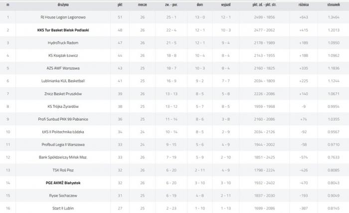 Pozostałe wyniki: Profi Sunbud PKK 99 Pabianice - HydroTruck Radom 93:94, Lublinianka KUL Basketball - Rysie Sochaczew 106:64, TSK Roś Pisz - Znicz Basket Pruszków 68:78, Bank Spółdzielczy Mińsk Mazowiecki - ŁKS II Politechnika Łódzka 87:77, RJ House Legion Legionowo - Trójka Żyrardów 96:67.