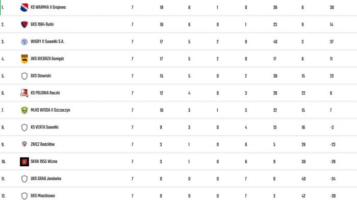 Warmia II Grajewo - Wigry II Suwałki 0:0. Żółte kartki: Jan Ostrowski (Warmia II), Igor Bartoszuk, Kacper Babkowski (Wigry II). Sędziował: Igor Lutostański.