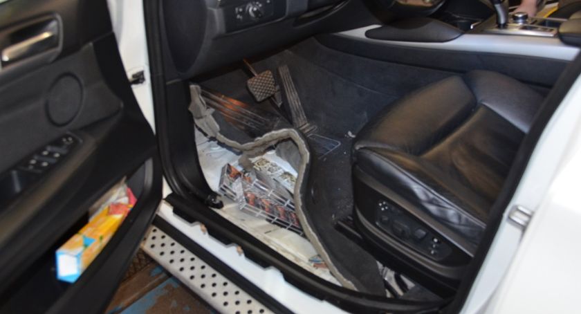 Mundurowi zatrzymali do kontroli BMW X6. Samochód skierowany został do kontroli szczegółowej. W trakcie przeszukania auta znaleziono ponad 2,5 tys. paczek papierosów różnych marek. Ukryte były w skrytkach niekonstrukcyjnych w podłodze pojazdu. Szacunkowa wartość tej kontrabandy wynosi ponad 36 tys. zł.