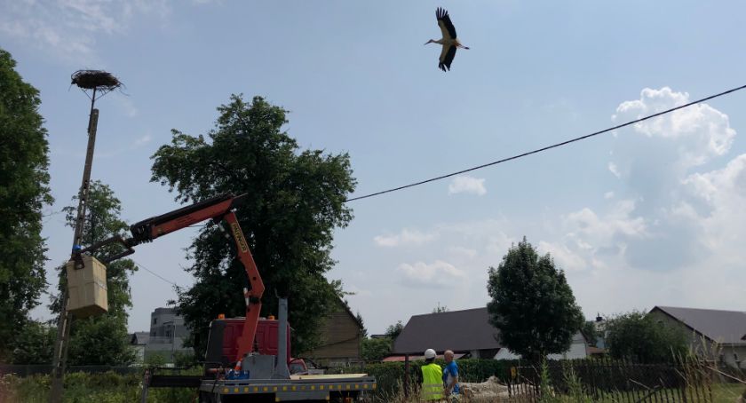 - W tym roku na wiosnę, w dolnych partiach bocianiej struktury zalęgły się wróble – dość szybko musiały ją opuścić. Ale prawdziwy dramat rozegrał się w czwartek 15 lipca: nawalne burze i wiatry, które przetaczały się przez Podlasie, powaliły stare drzewo, na którym zamieszkiwała 6-osobowa bociania rodzina. Nie mogliśmy tego tak zostawić: dzień później postawiliśmy słup i nową konstrukcję. Potem działy się tylko cuda – przekazała Urszula Glińska, rzecznik prasowa burmistrza Choroszczy. – O tym, że udało nam się pomóc bocianom z Łysek – to mało powiedzieć. Mieszkańcy są z nimi związani od lat i co roku nie tylko na nie czekają, ale także z ciekawością, a nierzadko pełni emocji, przeżywają bocianie losy: gdy samce walczą o gniazdo, gdy rodzą się młode, gdy odlatują, albo gdy gniazdo jest zawłaszczane przez innych skrzydlatych braci – dodała.