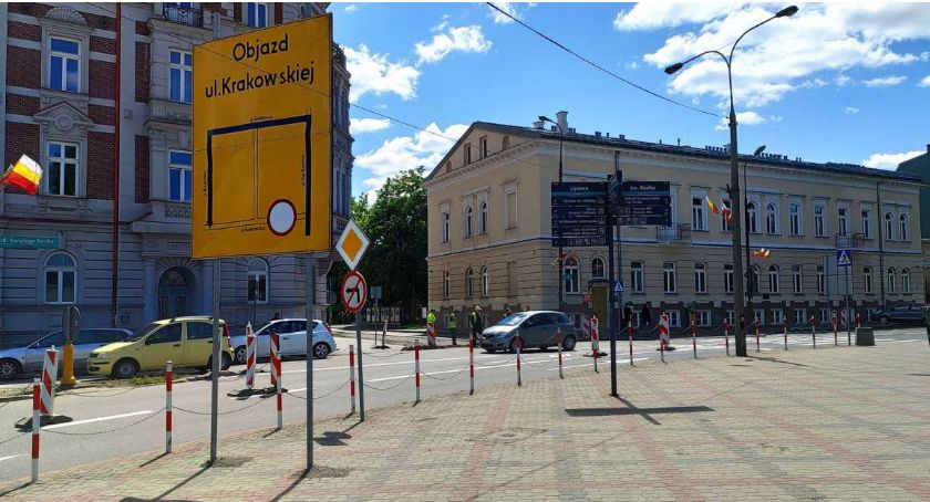 Informujemy zatem, że ulica Krakowska jest otwarta niemal cała. W tej chwili prace są prowadzone bliżej skrzyżowania ze Św. Rocha. Wjazd możliwy jest od strony Kalinowskiego i da się wyjechać tą samą drogą lub przez ulicę Brukową. Dopiero w połowie wakacji planowane jest zamknięcie ulicy Krakowskiej na kolejnym odcinku, od ul. Stołecznej do ul. Brukowej. Ale nadal pozostanie ona przejezdna i można na nią będzie swobodnie wjechać i wyjechać.