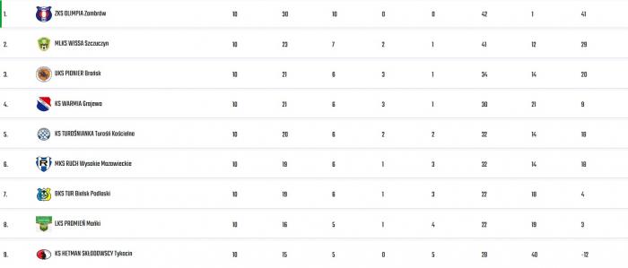 Kibice z Tykocina mają istną huśtawkę nastrojów. Ich ulubieńcy w środę gromili Spartą aż 7:0, by w sobotę przyjąć 9 goli od liderującej Olimpii. Ekipa z Zambrowa u siebie pokazała, że celowniki ma znakomicie nastawione, a Przemysław Jastrzębski zwiększył liczbę strzelonych goli do dwudziestu (w tym meczu zdobył 3 bramki). Hetman w tym spotkaniu stanowił tylko tło, a w końcówce meczu gości interesowało tylko jedno: żeby nie skończyło się dwucyfrówką. I akurat ten cel zrealizowali. A walec z Zambrowa dalej miażdży rywali zmierzając ku III lidze.