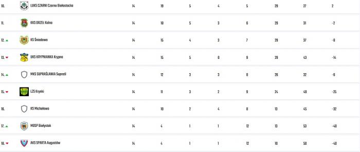 Krypniankę czeka teraz trudny wyjazd do Wysokiego Mazowieckiego (18.30, 29 października), a Czarni zagrają na wyjeździe w Supraślu z Supraślanka (14.30, 29 października).