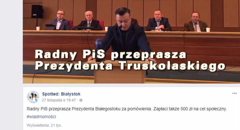 Teraz Tadeusz Truskolaski będzie musiał wyjaśnić, w jaki sposób na profilu Spotted Białystok znalazł się film z publicznymi przeprosinami radnego Stawnickiego. Oczywiście, przeprosiny wygłoszone podczas ostatniej sesji Rady Miasta były publiczne, część mediów je nagrywała, ale udostępniała na własnych nośnikach. Spotted Białystok nie ma żadnych dziennikarzy i w zasadzie nie wiadomo, kto prowadzi ten profil na Facebooku. Ale zamieszcza on wiele tak zwanych newsów, często kompletnie fejkowych, mających wyłącznie na celu zdyskredytowanie oponentów Tadeusza Truskolaskiego, jego syna lub zastępców prezydenta.