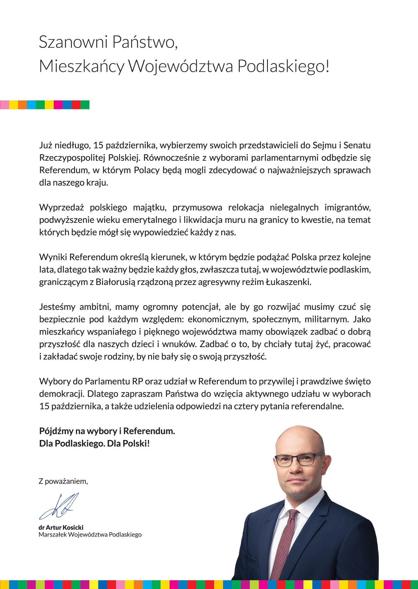 - Chcemy, żeby frekwencja w województwie podlaskim była jak najwyższa i myślę, że obowiązkiem każdego samorządowca jest zachęcanie do tego, aby mieszkańcy wypowiadali się zarówno poprzez referendum, jak i w wyborach – podsumował Artur Kosicki.