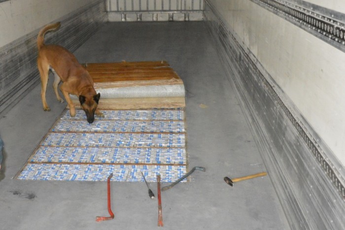 W ręce podlaskich celników wpadło niemal 30 tysięcy paczek nielegalnych papierosów o wartości rynkowej 300 tysięcy złotych. Do wykrycia kontrabandy przyczynili się czworonożni specjaliści pracujący w Służbie Celnej – owczarki belgijskie Gotam i Andi.