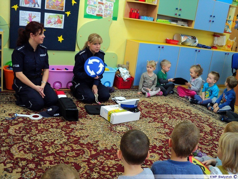 W trosce o najmłodszych uczestników ruchu drogowego białostoccy policjanci odwiedzili dzieci z przedszkola samorządowego nr 7. Rozmawiali z przedszkolakami o bezpieczeństwie w domu i na drodze.