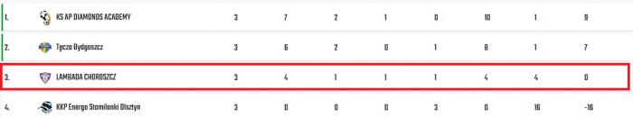 Tęcza Bydgoszcz - Lambada Choroszcz 0:3 (0:0). Bramki: Wiktora Filipczak 18, 20, 23.