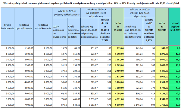 Od 1 października zaczną obowiązywać uregulowania, które spowodują podwyższenie większości wypłacanych przez ZUS świadczeń. Przepisy ustawy z 30 sierpnia 2019 r. o zmianie ustawy o podatku dochodowym od osób fizycznych oraz ustawy o zmianie ustawy o podatku dochodowym od osób fizycznych oraz niektórych innych ustaw wprowadzają zmiany, na których zyskają wszyscy, którzy płacili podatek 18-procentowy.