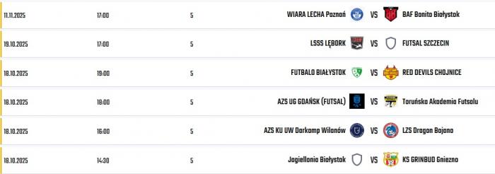 Z kolei Futbalo Białystok podejmie u siebie (19.00) drużynę Red Devils Chojnice i będzie to biało-zielonych trudny sprawdzian. O punkty będzie bardzo trudno dla BAF Bonito Białystok, które jedzie do jaskini lwa czyli na mecz z Wiarą Lecha Poznań.