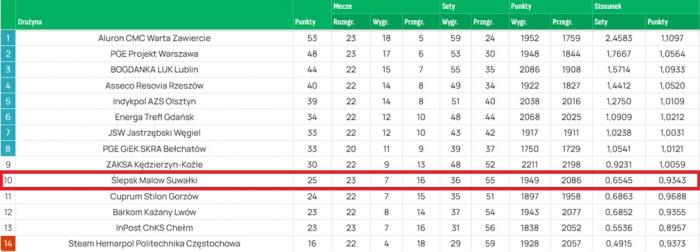 Poniedziałek nie był dobrym dniem dla kibiców siatkówki w województwie podlaskim. Nasz jedynak w ekstraklasie siatkówki Ślepsk Malow Suwałki, mierzył w czołową ósemkę PlusLigi ale w poniedziałek musiał uznać wyższość beniaminka. Porażka 1:3 z InPostem ChKS Chełm w ramach 24. kolejki zmagań niemal definitywnie przekreślił\ szanse Biało-Niebieskich na udział w fazie play-off. Do fatalnych nastrojów sportowych dochodzą też smutne wieści kadrowe – jeden z liderów zespołu przeszedł właśnie operację.