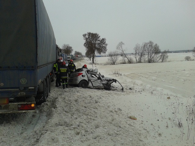 Pod jadący przed służbowym samochodem TIR, nieoczekiwanie wjechała mała Corsa. Huk i trzask i stało się. Corsa w rowie, zakopana w śniegu. Funkcjonariusze natychmiast zatrzymali swoje auto i dobiegli do Opla. Jak się okazało, w samochodzie jechał tylko kierowca, lecz jego stan po zderzeniu z wielkim TIREM był opłakany. Liczne złamania otwarte nie pozwoliły na natychmiastowe wyciągnięcie go z wraku. Natychmiast zawiadomiono Policję i Pogotowie Ratunkowe.