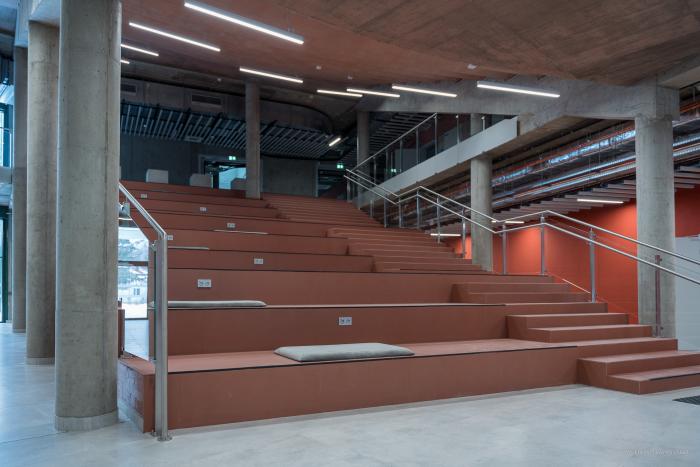 Projektanci postawili na energooszczędność. Na dachu przygotowano miejsce pod panele fotowoltaiczne, a budynek posiada zaawansowany system odzysku wody deszczowej. Deszczówka będzie zbierana do podziemnego zbiornika i wykorzystywana do spłukiwania toalet, co w dobie rosnących kosztów utrzymania i dbałości o środowisko jest rozwiązaniem wzorcowym. Obiekt jest w pełni dostępny dla osób z niepełnosprawnościami, posiada zielony dziedziniec sprzyjający odpoczynkowi między wykładami oraz parking na 148 miejsc.