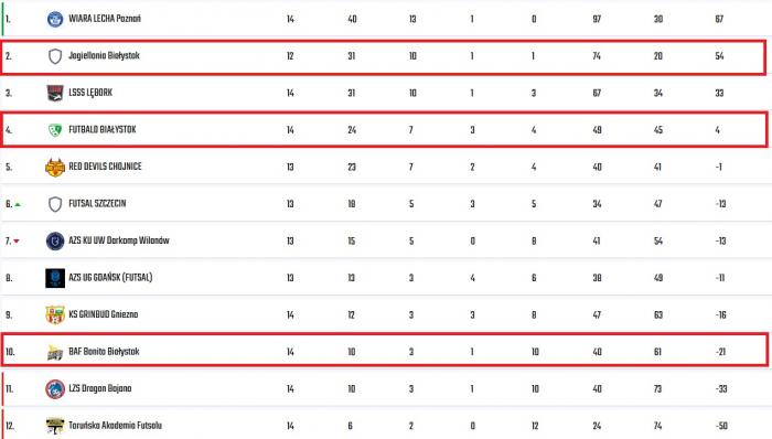 Jagiellonia pierwsze dwa mecze przełożyła. Domowe spotkanie z 12 kolejki z zespołem Futsal Szczecin zagra 22 lutego, a wyjazd do Chojnic na mecz z Red Devils Chojnice rozegra aż 4 kwietnia. Ligowe granie żółto-czerwoni zaczęli od derbowego grania z Futbalo Białystok, w którym pewnie wygrali aż 8:1 (gole strzelali Oleksandr Kolesnykov 2, Piotr Skiepko 2, Kamil Surmiak 2, Mateusz Łabieniec 2 dla Jagi i Mateusz Rogowski dla Futbalo).