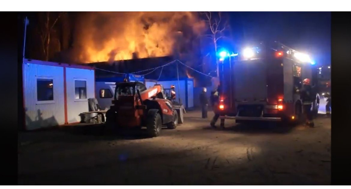 Na miejscu był Wojciech Koronkiewicz, były radny miejski, który zarejestrował pożar i walczących z nim strażaków. Widać, że pożar rozprzestrzenił się, ognie były duże i wysokie, a strażacy na miejscu pojawili się, kiedy w zasadzie cały drewniany budynek stał już w dużych płomieniach. Widać również, że obok znajdują się kontenery budowlane, z których na co dzień korzystają robotnicy budowlani. W bezpośrednim sąsiedztwie bowiem znajduje się plac budowy.