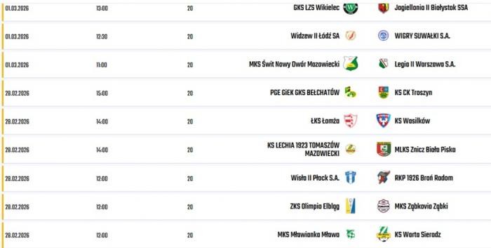 Terminarz od razu rzuca nas na głęboką wodę. Sobotnie starcie w Łomży (28.02, godz. 14:00) to nie tylko derby regionu, ale też pojedynek dwóch skrajnych celów. ŁKS musi wygrać, by gonić lidera, a Wasilków musi punktować, by nie stracić kontaktu z bezpieczną strefą. Niedziela (01.03) to z kolei trudne wyjazdy suwalczan do Łodzi i białostoczan do Wikielca.