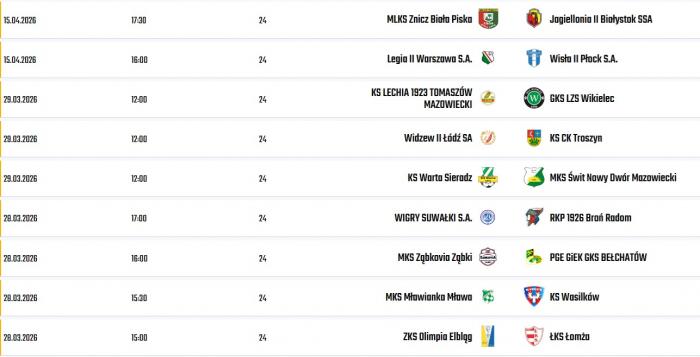 Emocji nie zabraknie też na innych stadionach. Wigry Suwałki jako jedyne z naszych ekip zagrają u siebie, podejmując Broń Radom – tu punkty są niemal obowiązkiem. ŁKS Łomża rusza do Elbląga na ciężki bój z Olimpią. Z kolei rezerwy Jagiellonii na swój mecz ze Zniczem Biała Piska poczekają do 15 kwietnia.
