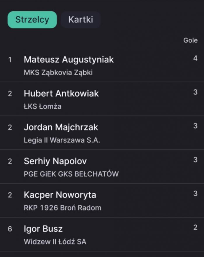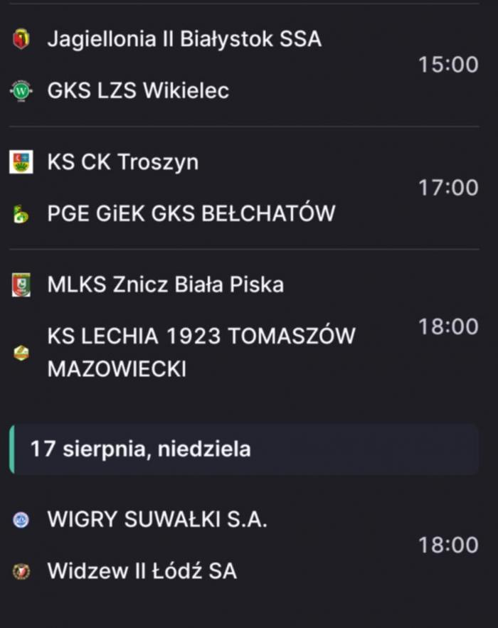 GKS Wikielec - KS Wasilków 1:2 (1:0). Bramki: Shoki Nagano 45+4 - Mikołaj Wasilewski 55, Bartosz Bayer 85. Żółte kartki: Lukaś Kubań, Alexandre Bosse, Paweł Depka (Wikielec), Kacper Ptasiński, Kacper Skibko, Bartosz Milewski (Wasilków). Czerwona kartka: Alexandre Bosse (59, za 2 żółte). Sędziował: Adam Kwapisiewicz.