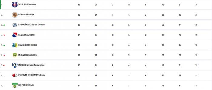 18 kolejka zacznie się w Bielsku Podlaskim: w sobotę o godzinie 11.00 KS Michałowo podejmowała będzie Krypniankę. Dla obu ekip to ważny mecz. Goście zaczęli sezon od wysokiej porażki z Olimpią Zambrów (0:6) i mają wielkie nadzieje na rehabilitację i poprawę miejsca w tabeli. Okazja na to jest dobra: rywale to zespół KS Michałowa zajmujący 16 miejsce w tabeli i broniący się przed degradacją. Krypnianka ma przewagę 7 punktów nad rywalami z Michałowa i wielkie nadzieje na marsz w górę tabeli. Występujący w roli gospodarzy gracze z Michałowa z kolei również są "na musiku": aby uciec ze strefy spadkowej muszą punktować. Sąsiedzi w tabeli wydają się wymarzonym rywalem. Tyle, że zespół z Michałowa ostatni raz wygrywał 14 września (3:1 ze Spartą Augustów).