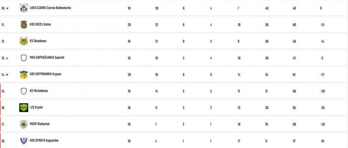 Krypnianka: Kacper Laskowski - Paweł Citkowski, Łukasz Jabłoński (75 Krzysztof Osypiuk), Karol Janik (57 Damian Wasilewski), Kacper Karwowski (50 Sebastian Godlewski), Filip Kaźmierczyk (55 Mateusz Butkiewicz), Marcin Krysztopik, Kamil Lisiewicz (80 Miłosz Szulżuk), Michał Osypiuk, Daniel Siemieniuk, Piotr Snarski.