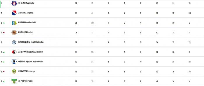 Dziesiąta wygrana Ruchu dała mu 7 lokatę i mając dwa zaległe mecze w zapasie, pozwala realnie spoglądać w stronę ligowego podium. Teraz czas na wielkie emocje – w następnej kolejce Ruch wybiera się do Zambrowa na „małe derby regionu” z liderującą Olimpią!