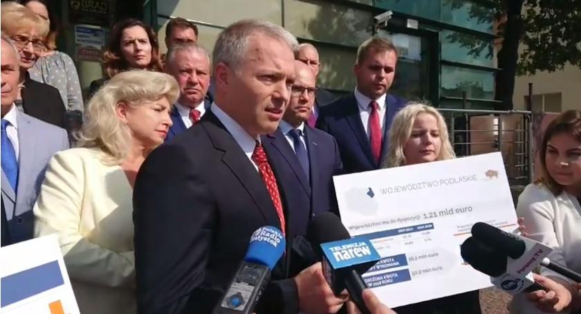 - Nasze województwo dysponuje środkami z Unii Europejskiej, których nie jest w stanie wydać po czterokrotnej informacji i ostrzeżeniach. Z Ministerstwa Rozwoju otrzymaliśmy kolejne dane, które budzą bardzo poważny niepokój – powiedział Jacek Żalek, kandydat PiS na prezydenta Białegostoku. – Ponad 100 milionów euro możemy stracić w wyniku nieudolności władz województwa. Te pieniądze są o dziwo zakontraktowane w Unii Europejskiej, a wydane na poziomie niecałych 10 proc. Nie potrafimy wydać środków, które mamy od Unii Europejskiej, a dzisiaj będzie podjęta próba zaciągnięcia kolejnego kredytu, kredytu, który przekracza zadłużenie województwa podlaskiego – dodał.