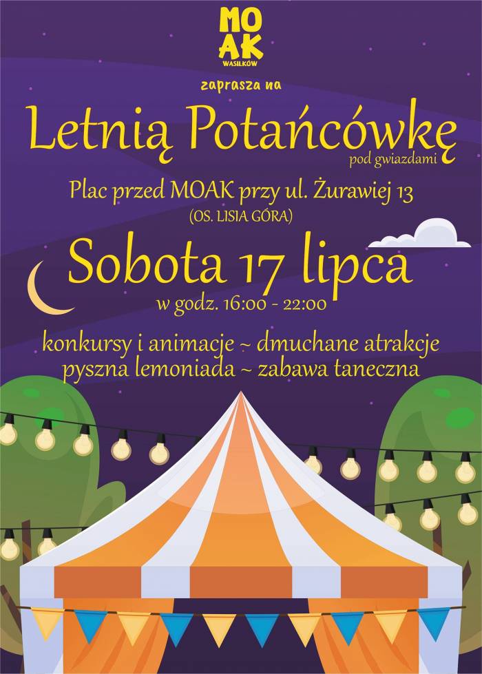 W okresie wakacyjnym imprez jest sporo. I oby tylko pogoda dopisała, bo szykuje się pyszna zabawa dla tych, którzy lubią poruszać biodrami i nogami. Miejski Ośrodek Animacji Kultury w Wasilkowie zaprasza na Letnią Potańcówkę pod gwiazdami.