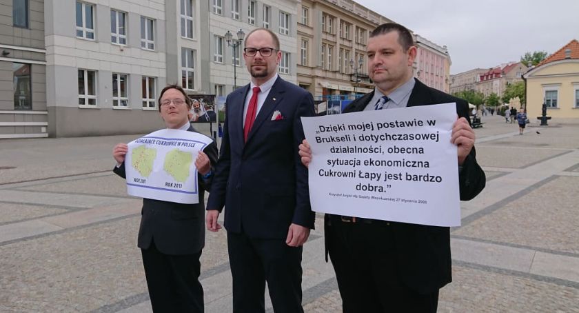 Kandydat Konfederacji do Parlamentu Europejskiego przypomniał, że w 2005 roku to ówczesny minister rolnictwa, Krzysztof Jurgiel, odpowiadał za negocjacje w strukturach unijnych odnośnie polskiego cukru oraz limitów cukrowych. Kilka lat później nastąpiło zamknięcie cukrowni w Łapach. Pracę straciło wówczas około 150 osób, zaś wszystkie gospodarstwa rolne naokoło musiały się przebranżowić. Ale jednak coś zostało „na pamiątkę” działań Unii.