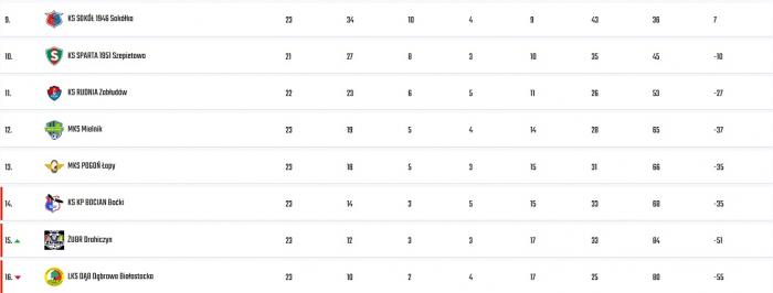 Na dole tabeli emocje sięgają zenitu. Kluczowe dla układu sił będzie starcie Bociana Boćki z Mielnikiem. Dla gospodarzy to „mecz o życie” – strata do bezpiecznych miejsc powiększa się, a Mielnik ma nad nimi 5 punktów przewagi. Szansy na przełamanie szukać będzie też Dąb Dąbrowa Białostocka w starciu z Rudnią Zabłudów. Żubr Drohiczyn spróbuje pójść za ciosem w meczu ze Spartą Szepietowo, by na dobre oddalić się od strefy spadkowej.