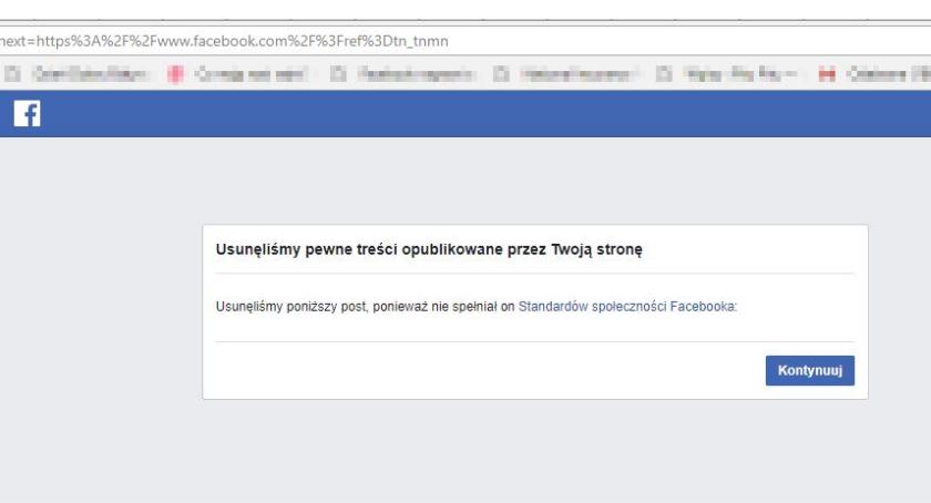 W ciągu ostatnich dni Facebook z naszego profilu nie tylko wykasował sam sporo zdjęć, ale także otrzymaliśmy ostrzeżenie, że jeśli nie usuniemy treści niezgodnych z ich tak zwanymi standardami, nasz redakcyjny profil zostanie zablokowany. Przy czym Facebook nie był uprzejmy powiedzieć, jakie treści były lub mogą być niezgodne z ich tak zwanymi standardami.