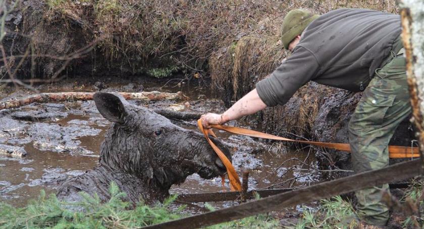 Od razu ruszyli na ratunek. Śmiertelną pułapką dla klępy – samicy łosia, okazała się torfianka, czyli zbiornik wodny powstały po wydobyciu torfu. Akcja ta była nieprzeciętnie trudna i wymagała ogromu siły fizycznej 6 leśników. Było zimno, grząsko i niestabilnie, ale udało się!