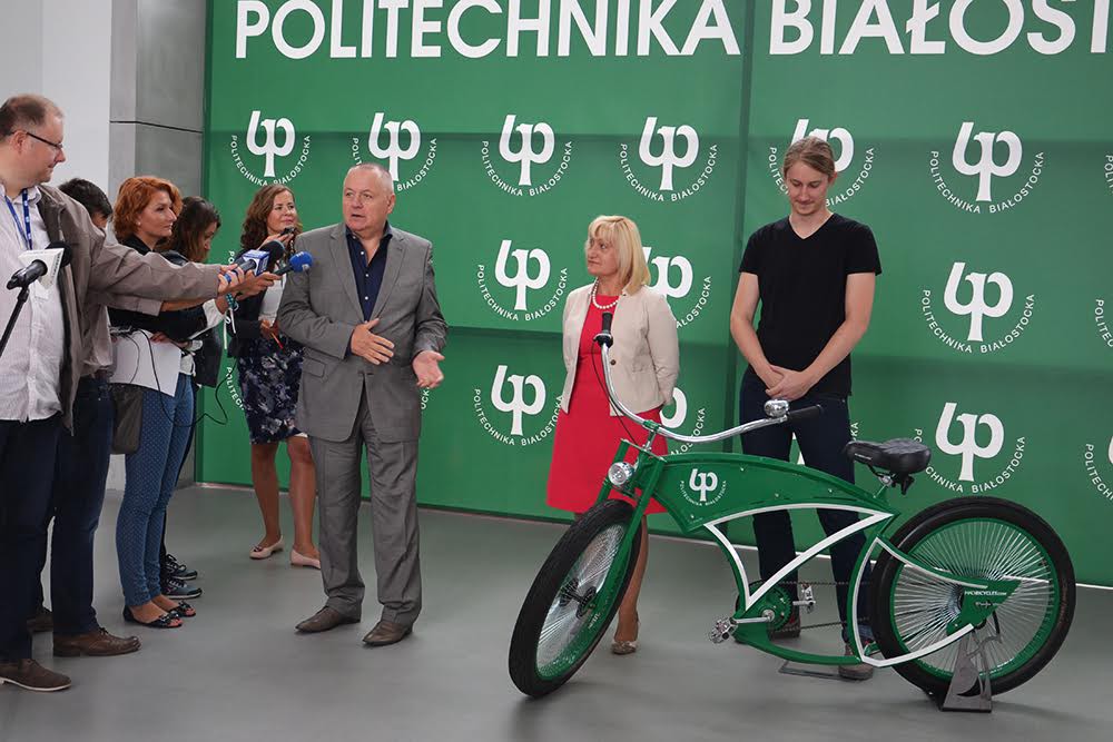 Politechnika Białostocka ogłosiła dziś na konferencji prasowej konkurs na projekt oryginalnego stojaka rowerowego. Stojaki wykonane według zwycięskiej koncepcji ustawione zostaną na terenie uczelni. Nagrodą w konkursie jest designerski rower miejski PB-TechnoCruzer zaprojektowany i wykonany przez absolwenta PB Adama Zdanowicza.