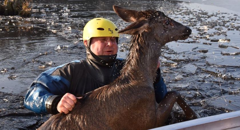 W miejscowości Topiło, w powiecie hajnowskim, przejeżdżający patrol straży granicznej zauważył uwięzionego cielaka (młodego jelenia). Zwierzę wpadło do wody po tym, gdy skruszył się pod jego ciężarem bardzo cienki lód. Młody jeleń nie miał szans wydostać się samodzielnie z zimnej wody,