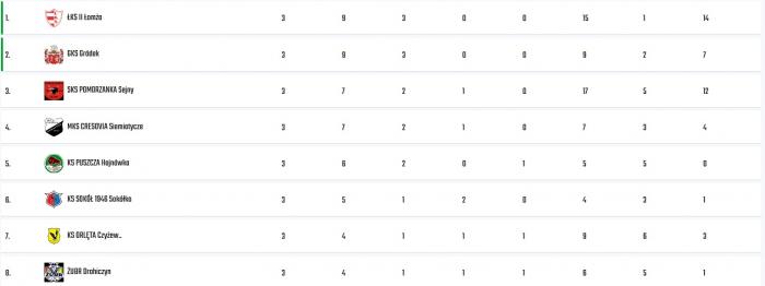 ŁKS II Łomża - Rudnia Zabłudów 7:0 (5:0). Bramki: Jakub Proniewski 17, Bartosz Pikuła 35, Błażej Lesicki 36, 50, Łukasz Kijek 42, 44, Łukasz Sychowicz 90. Żółte kartki: Arseni Nikifarenkau, Kacper Miłaszewski (ŁKS II), Filip Tarasiuk (Rudnia). Sędziował: Marcin Czech.