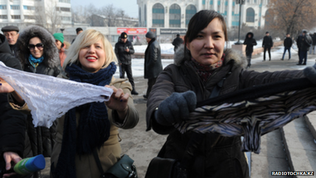 Na ulicach pojawia się obecnie coraz więcej demonstrantów z matkami na głowach, którzy protestują już nie tylko w obronie majtek, ale również przeciwko spadkowi wartości waluty lokalnej, tenge.
