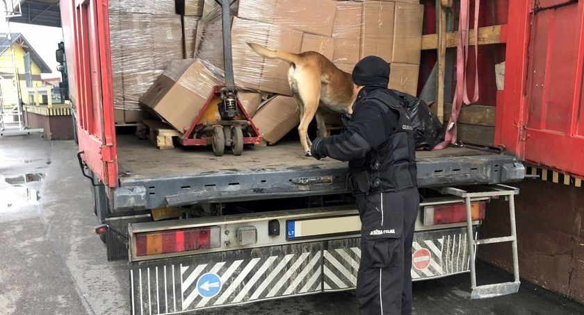 Funkcjonariusze podlaskiej KAS zatrzymali do kontroli w pobliżu polsko - litewskiej granicy w Budzisku ciężarówkę na litewskich numerach rejestracyjnych, kierowaną przez 42-letniego Litwina. Zgodnie z przedstawionymi dokumentami w naczepie tira miały znajdować się lodówki do wina. Samochód został prześwietlony i poddany kontroli z wykorzystaniem Gotama - służbowego owczarka belgijskiego wyszkolonego do wykrywania wyrobów tytoniowych.