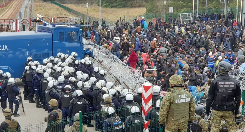 Migranci jeszcze po stronie białoruskiej sforsowali ustawione tam ogrodzenie i zaczęli przedzierać się w stronę polskich urządzeń granicznych. Na ich drodze jest jednak kordon polskich mundurowych, za których plecami ustawiony został rząd pojazdów wyposażonych w armatki wodne. Jak to wygląda widać na nagraniach zamieszczonych przez białoruskiego dziennikarza, szefa niezależnego od reżimu Łukaszenki, portalu NEXTA.