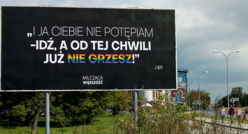 „Nowy billboard w centrum Białegostoku: „I Ja ciebie nie potępiam. Idź i odtąd już nie grzesz”. Taki cytat postanowiliśmy umieścić na nowym billboardzie, który zawisł właśnie w Białymstoku. Nie planujemy w tym momencie w naszym mieście żadnej nowej, większej kampanii billboardowej, ale uznaliśmy, że tak bardzo brakuje nam tego cytatu w argumentacji lewicowych bojowników o „prawdziwe chrześcijaństwo”, o które troskę wyrażają w komentarzach na temat chrześcijańskiego miłosierdzia, że należy je upublicznić, aby mogło należycie dotrzeć do naszych, wybiórczo uczonych w Piśmie, oponentów” – czytamy na facebookowym profilu Milczącej Większości.