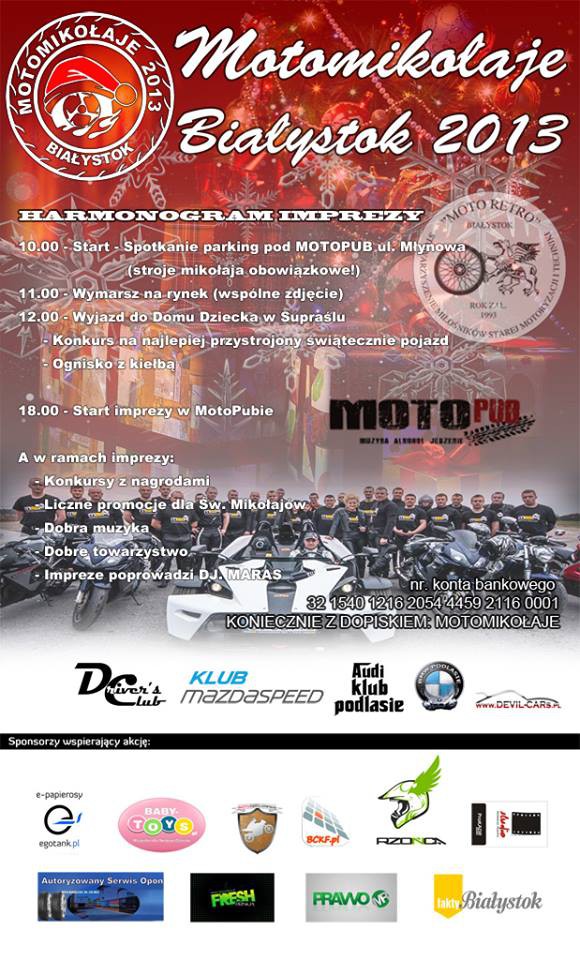 Wszystkie informację odnośnie akcji są dostępne na oficjalnym fan page MotoMikołaje Białystok.