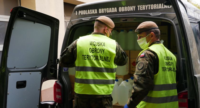 Bo na Podlasie trafiły także dostawy środków ochrony osobistej, jak maseczki czy kombinezony dla personelu medycznego zatrudnionego w placówkach ochrony zdrowia, jak również do domów pomocy społecznej i innych placówek, które muszą zabezpieczyć personel przed możliwością zakażenia śmiercionośnym wirusem SARS-CoV-2. Oprócz tego dotarł tu również wspomniany wyżej płyn do dezynfekcji w placówkach oświatowych. I ten płyn dalej rozdysponowywali już podlascy Terytorialsi.