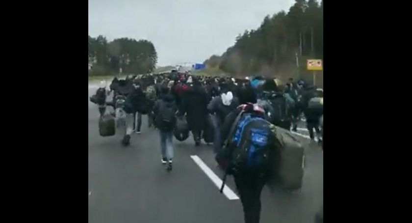 Wygląda to bardzo źle, ponieważ sznur ludzi formuje się wzdłuż szosy, a z lasu wychodzą cały czas kolejne osoby. Inne dowożone są samochodami przez służby białoruskie. Straż Graniczna z placówki w Kuźnicy wczoraj otrzymała solidne wsparcie sił policyjnych i wojskowych, ale wydaje się, że dopiero dziś trzeba będzie naprawdę sporo polskich mundurowych, jeśli ten tłum ruszy siłą w stronę Polski. Jak to wygląda widać na poniżej zamieszczonych nagraniach.