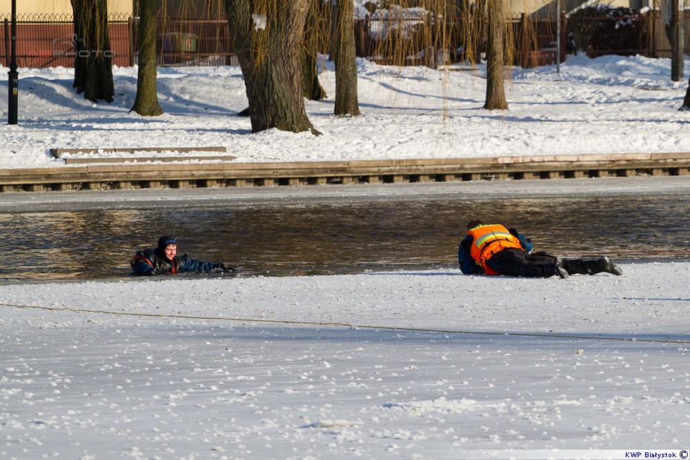 Na rzece Netta w Augustowie pod mężczyzną załamał się lód. Na miejsce natychmiast ruszyli policjanci, Strażacy Ochotnicy oraz funkcjonariusze Straży Granicznej. Dzięki szybkiej reakcji i właściwemu współdziałaniu służb mężczyzna został uratowany… Na szczęście były to tylko ćwiczenia.