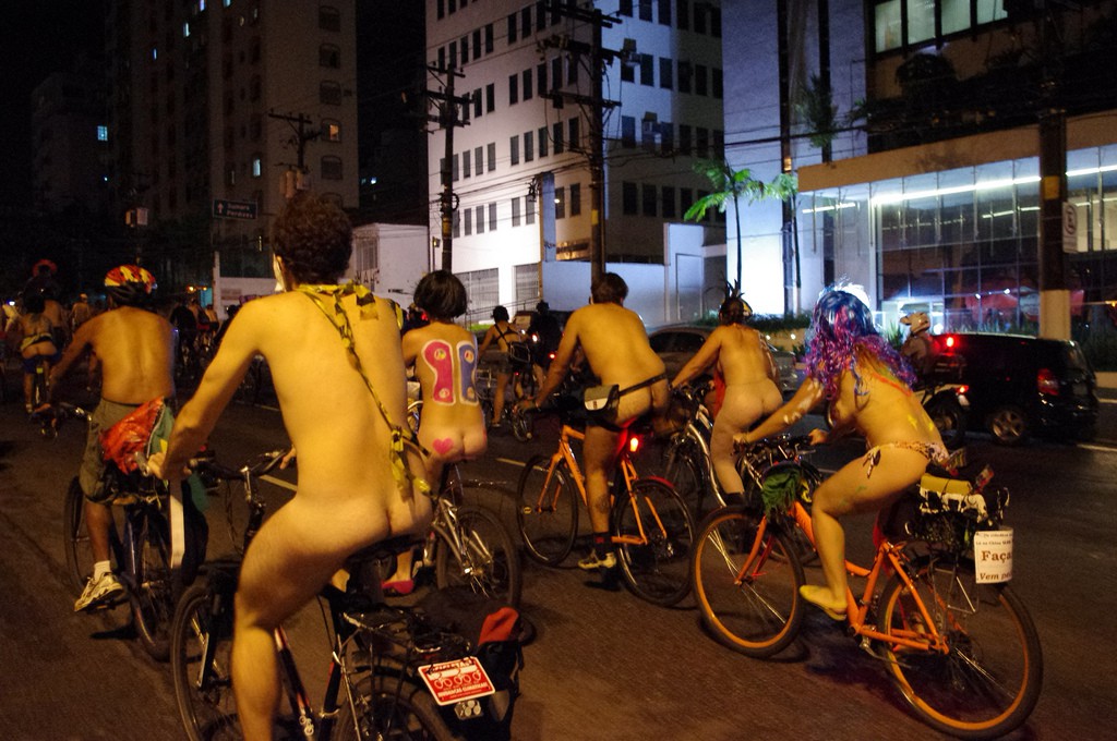 Nadzy rowerzyści na ulicach miasta