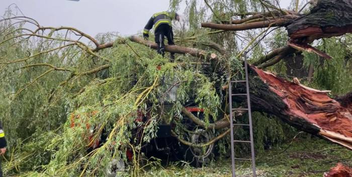 Wiadomo, że uszkodzonych jest kilka budynków mieszkalnych. W niektórych zerwane zostały częściowo dachy, w innych uszkodzone. Ale i tak przecież wymagają naprawy. Nawałnica zniszczyła też budynki gospodarcze, w tym stodołę. W innych woda zalała wszystko co tylko znajdowało się w stodołach. Ucierpiał także sprzęt rolniczy. Strażacy musieli usuwać oberwane konary, aby dało się odblokować uwięzione pod nimi dwa traktory. Inni w tym czasie wypompowywali wodę z pomieszczeń gospodarczych.