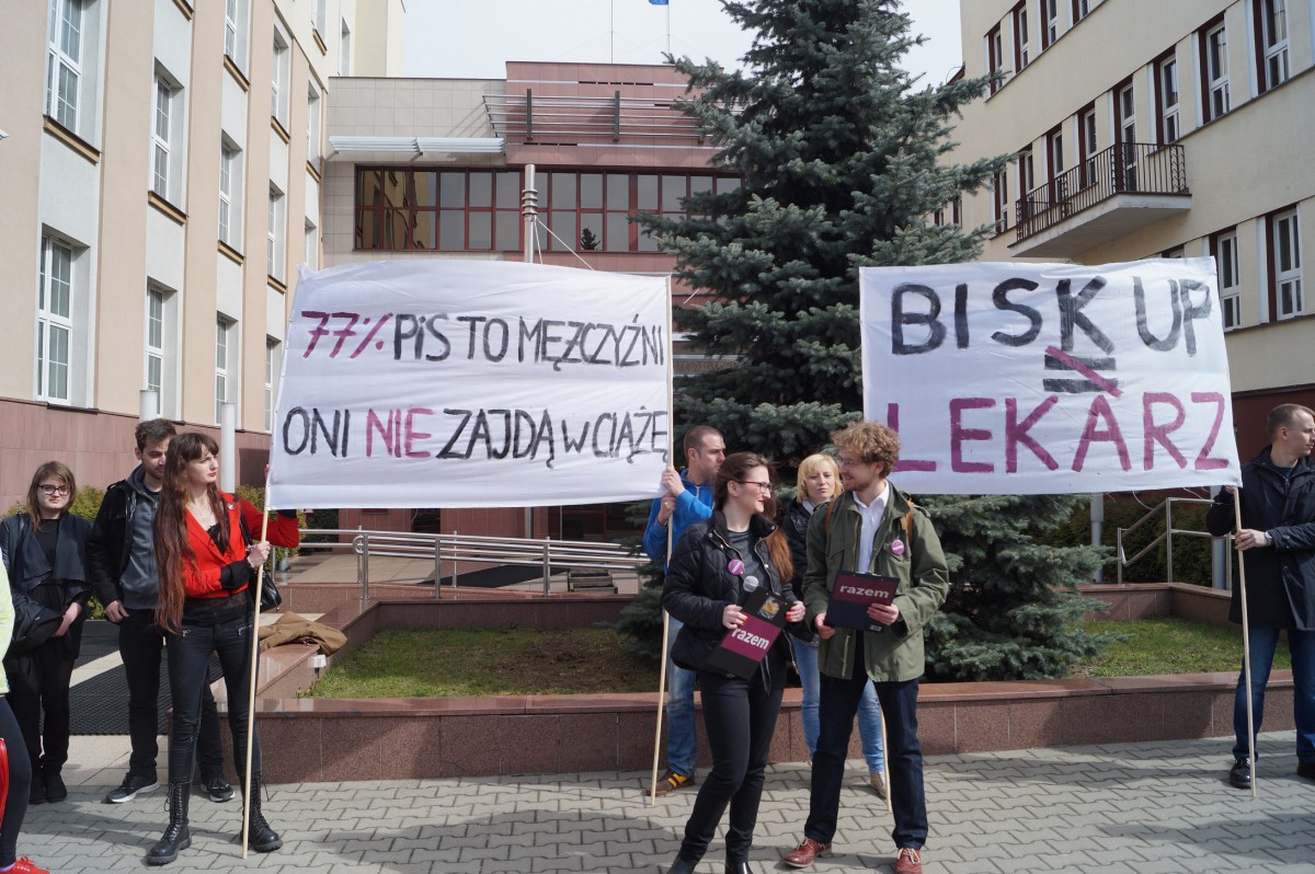 Blisko 70 osób przyszło w niedzielę przed Podlaski Urząd Wojewódzki w Białymstoku na spontanicznie zwołaną przez partię Razem pikietę. Protestowali przeciwko pomysłom zaostrzenia prawa antyaborcyjnego, a właściwie - praktycznie całkowitemu zakazowi aborcji. Podobne akcje odbyły się w całej Polsce, a główna demonstracja miała miejsce w Warszawie przed Sejmem.