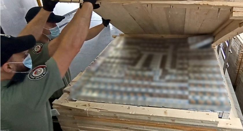 Funkcjonariusze Krajowej Administracji Skarbowej z polsko-białoruskiego przejścia granicznego w Kuźnicy skontrolowali tira, który zgodnie z dokumentami miał przewozić deski. W trakcie szczegółowego sprawdzania ciężarówki poprzedzonego prześwietleniem rentgenowskim okazało się, że w naczepie, w specjalnie przygotowanych skrzyniach imitujących palety z deskami, ukryta jest papierosowa kontrabanda.
