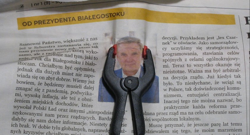„Zamiast dać nam szansę wykorzystania naszego doświadczenia w trudnych czasach, rządzący prowadzą działania osłabiające nasz potencjał” – pisze prezydent we wstępniaku, włączając w wypowiedź od razu wszystkich samorządowców. Żal pada w kontekście ograniczania dopływu pieniędzy: „od kilku lat systematycznie jesteśmy pozbawiani stabilnych źródeł finansowania. Budżety są coraz niższe, stajemy się petentami rządu”. No i to jest bardzo źle, i nie „daje szansy wykorzystania doświadczenia prezydenta w trudnych czasach”.