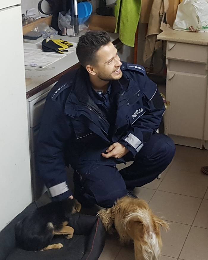 Podlaska policja i w ogóle policja ma swoje pięć minut świetnej promocji, która być może nawet skłoni do wstąpienia w szeregi tej formacji. Dokładnie w miniony poniedziełk, 3 grudnia, na nośnikach społecznościowych podlaskiej policji – na Facebooku i Twitterze – pojawiło się zdjęcie policjanta z Komendy Miejskiej Policji w Bielsku Podlaskim, które wywołało prawdziwą lawinę komentarzy, „lajków”, ale przede wszystkim zachwytów. Powód? Na zdjęciu widać bardzo przystojnego mundurowego z dwoma niewielkimi psiakami. Wcześniej policjant uratował szczeniaka, wyciągając go z rowu zmarzniętego i głodnego. Uratował go więc przed śmiercią.