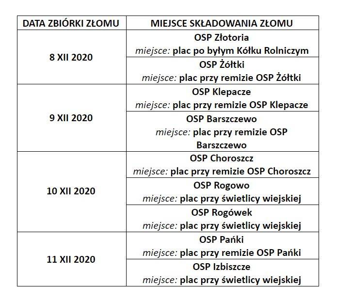 3. Zbiorka złomu na terenie całej gminy Choroszcz odbywa się w dniach 8-11 XII 2020 roku w dowolnie wybranej lokalizacji: