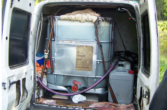 Ponad 700 litrów nielegalnie zlewanego paliwa zza wschodniej granicy znaleźli augustowscy celnicy i policjanci na drodze krajowej nr 8, w miejscowości Białobrzegi, podczas kontroli dostawczego Citroena.